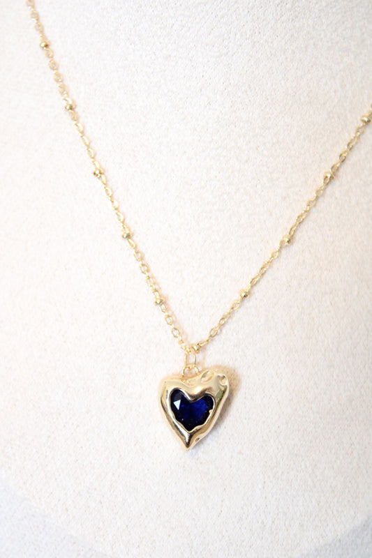 Collier cœur (bleu) en zircon, plaqué or 14k