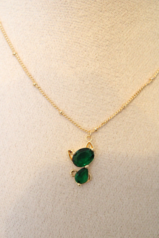 Collier avec pendentif en zircon vert en forme de chat.