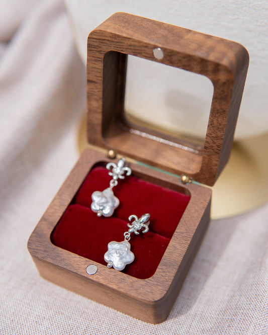 Boucles d’oreilles en perles d’eau douce avec motif floral carré
